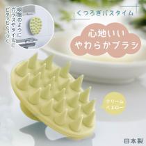 シリコンシャンプーブラシ 大 クリームイエロー 日本製 ヘッドスパ 毛穴 バスタイム お風呂 髪の毛 頭髪ケア マッサージ 美髪 下村企販