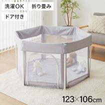 ベビーサークル 折りたたみ メッシュ ドア付き 123×106cm 洗濯 畳める グレー 扉付き シンプル かわいい 北欧 韓国 ベビーゲージ【送料