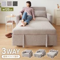 3way ソファーベッド 2人掛け 幅120 カウチ コンパクト ペット生地 リクライニング キャスター付き 肘付き ファブリック スライド式 ソフ