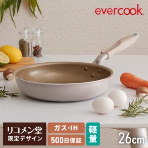 限定デザイン evercook エバークック フライパン 26cm IH対応 ガス火OK 500日保証 軽量モデル 新型 ウォームグレー 取っ手付き pfoaフリ