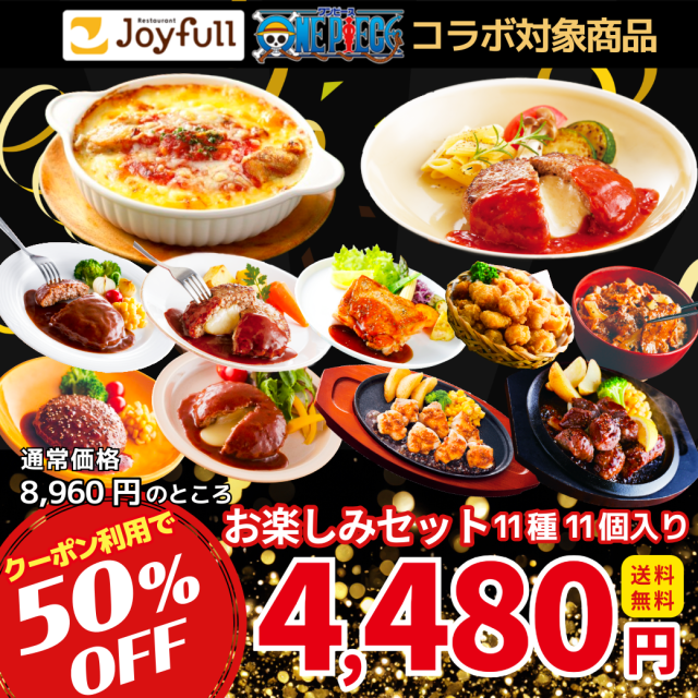\『ONE PIECE』コラボ対象商品クーポン利用で4,480円/ジョイフル 福袋 お楽しみ セット 11種11個入り サイコロステーキ チキンドリア