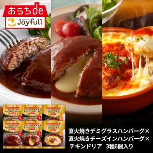 ジョイフル ハンバーグ 湯煎 セット 2種6個入( 直火焼き ハンバーグ デミグラス ソース、直火焼き チーズ イン ハンバーグ デミグラス