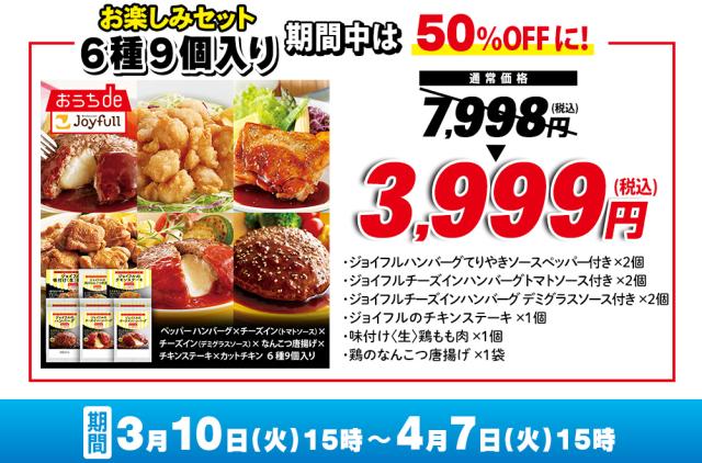 ※期間中、お楽しみセット「6種9個入り」【4/7(火)15時まで】に商品発送となる方が対象です。