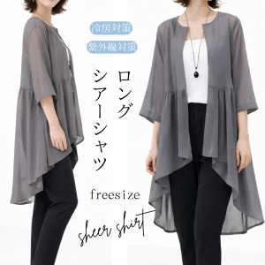 \BIGお買い物ラリーポイント10倍!/ シアーシャツ ロング レディース シアー シースルー シャツ フリル 冷房対策 紫外線対策 日焼け対
