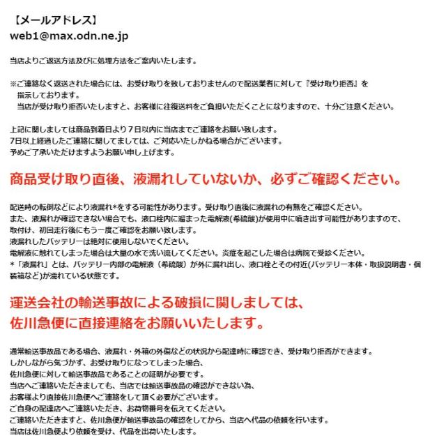 バッテリーご購入時のご注意