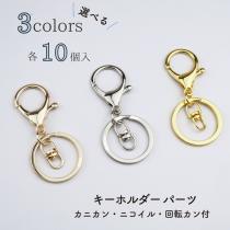 10個セット カニカン ナスカン ニコイル パーツ キーホルダー パーツ ゴールド シルバー イエローゴールド KC金 金具 回転カン フック ア