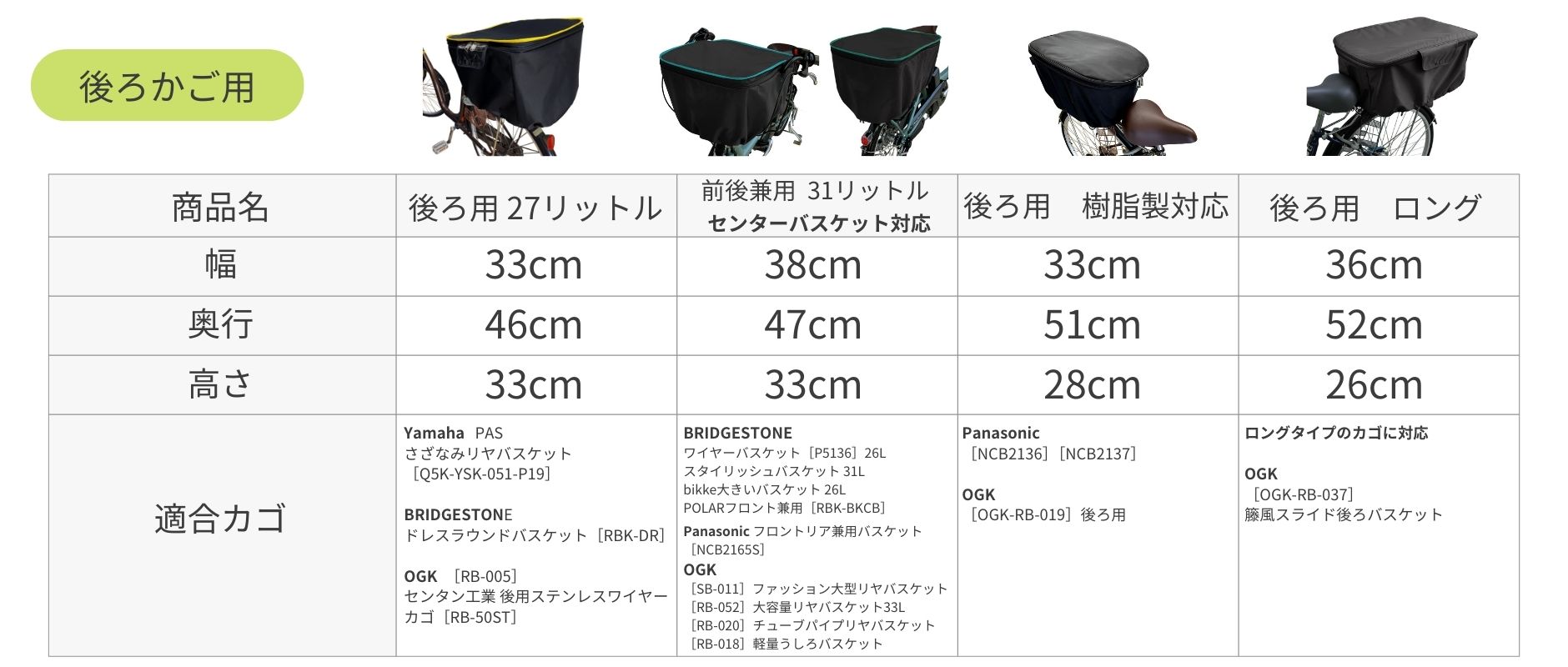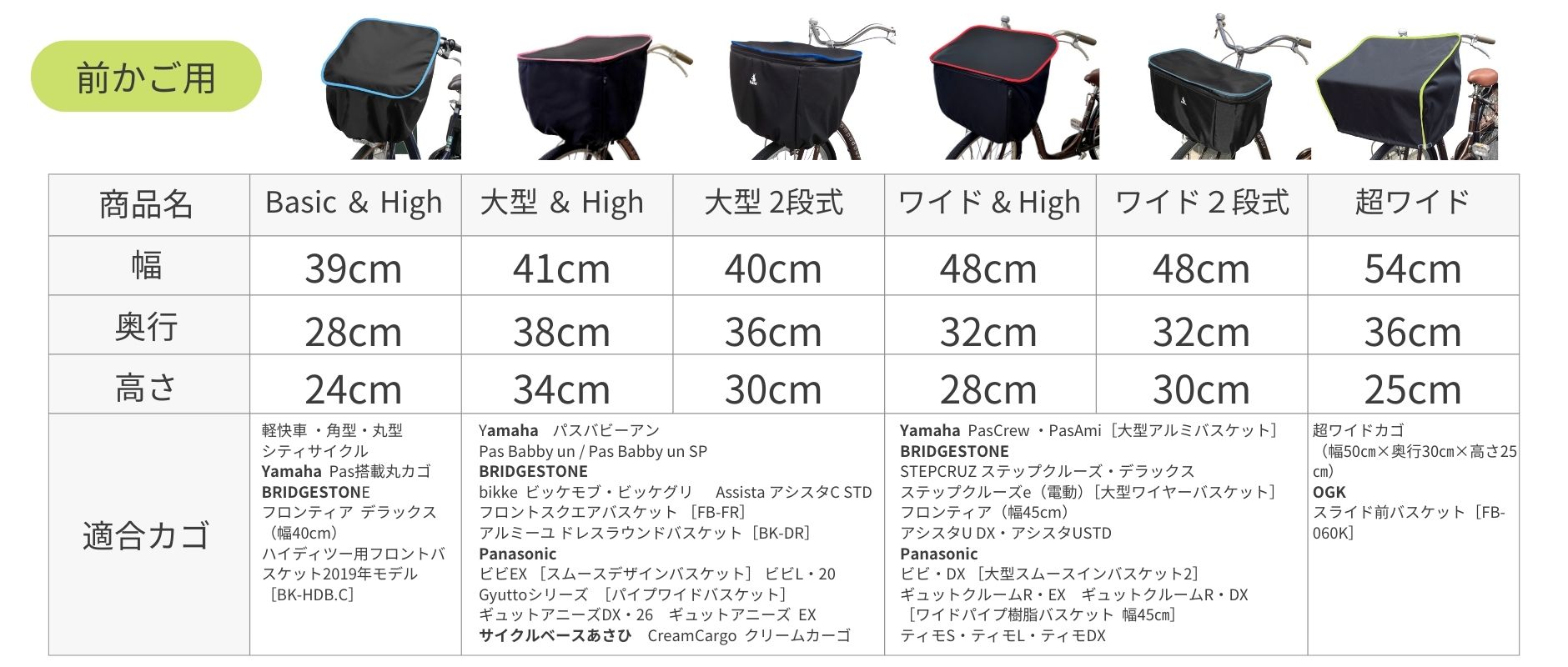 工房ヒロジャパン&Rabbit のカゴカバーは豊富なバリエーションがございます。 メーカーの年式によりサイズが異なる場合がございますので、実際のサイズをご確認ください。