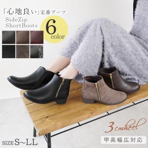 ブーツ 3cmヒール ショートブーツ 秋冬 レディース サイドジップ ショート 防滑 防寒 甲高 幅広 スエード 全9色 黒 ベージュ S-LL 太ヒ