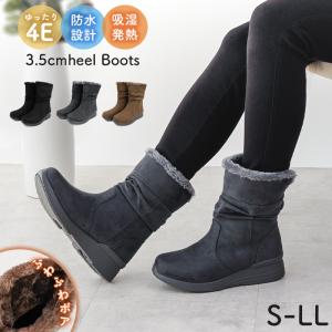 あったか 防水 ボア ブーツ 3.5cmヒール ミドル丈 レディース 裏ボア くしゅくしゅ 幅広ワイズ EEEE 4E 滑りにくい 防寒 レイン 吸湿発