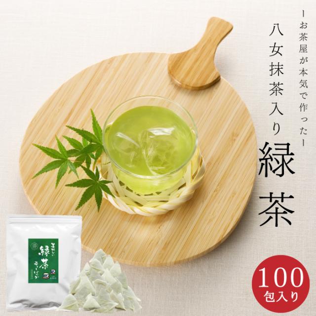 【 auPAY デイリー 1位 】100包 緑茶ティーバッグ(八女抹茶入り)緑茶 日本茶 八女 100個 大容量 高級 無添加 個包装 業務用 抹茶入り