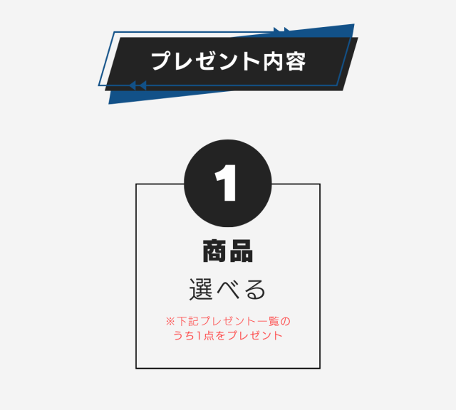 | 選べるプレゼントは応募者全員がもらえます |