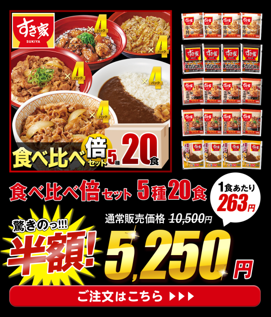 すき家 牛×カレーセット 牛丼の具120g 5パック×横濱カレー220g 5パック【送料無料】【冷凍(クール)】