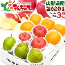 【出荷中】 冬の果実 3色詰め合わせ 3kg Dセット (サンふじ&ラ・フランス&庄内柿/秀品/10玉〜16玉入り) 旬 秋の味覚 りんご リンゴ 西