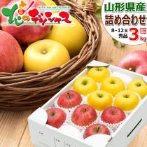 【出荷中】 山形県産 りんご サンふじ&シナノゴールド 詰め合わせ 3kg (秀品/8〜12玉入り) 旬 冬の味覚 リンゴ 林檎 冬ギフト お歳暮 ギ