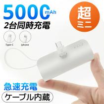 【超ミニ】モバイルバッテリー 5000mAh 小型 大容量 iPhone17対応 急速充電 超ミニ 充電器 2台同時充電 ケーブル内蔵 超軽量 スマホ充電