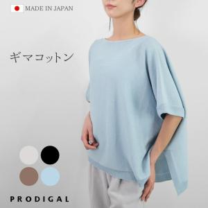 PRODIGAL サマーニット プルオーバー 五分袖 日本製 レディース 綿 フリーサイズ ニット 春 夏 ポンチョ シンプル 五泉ニット ギマコット