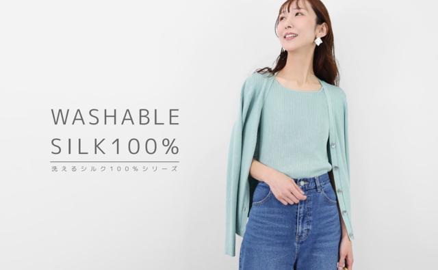 洗える シルク100% カーディガン リブ 日本製 レディース 春 夏 春夏 M L ニット 長袖 Vネック 五泉ニット ウォッシャブルシルク100%リ