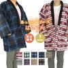 フリース ハンテン はんてん 袢纏 綿入 長袖 チェック M Lサイズ 男女兼用 フリーサイズ ブラウン 茶 ブルー 青 プリント チェック 格子