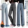 ゆったり 裏起毛 レディース デニムパンツ 防寒 ワイドパンツ 秋冬 薄手 ジーパン 美脚 あったか デニムパンツ 大きいサイズ ジーンズ ハ