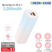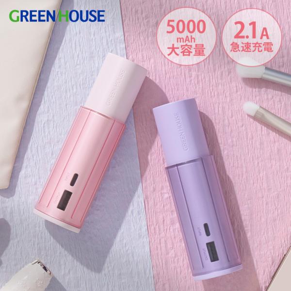 送料無料 モバイルバッテリー 5000mAh 軽量 小型 スティック型 スライドカバー付 残量表示 PSE認証 グリーンハウス GH-BTY50E