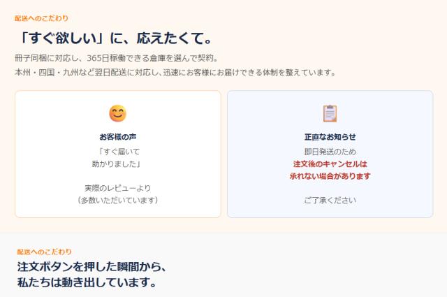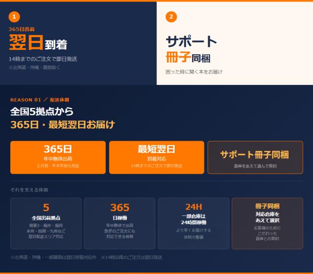 ガイアースでは、サポート冊子を同梱できて、365日発送に対応できる倉庫を選んで契約しています。