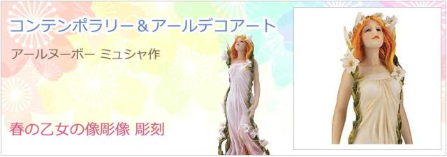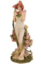 アルフォンス・ミュシャ彫像 コレクション-アールヌーボー「四つの花 バラ」「薔薇の女性」装飾的彫像(輸入品)