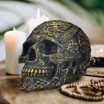 人生の節目ケルト風ノットワーク結び目デザインスカル頭蓋骨彫像中世異教徒風装飾彫刻置物ハロウイン贈り物輸入品