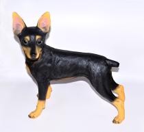 ゴールド色のトレイを咥えた、ドーベルマン犬 小物テーブル彫像 オーナメント置物装飾 贈り物輸入品