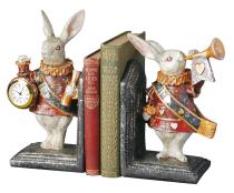 不思議の国のアリス 本立てブックエンド 懐中時計を持つウサギとトランペットを吹くウサギ 輸入品