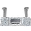 【お墓用】花立S-S39 ミニ香炉セット お墓用 高級白御影石の花立とステンレス製 花筒1対(2本)+ミニ香炉(線香皿付き)【工事不要】置くだけ