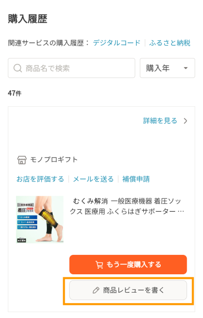 ・購入履歴 > 商品レビューを書く