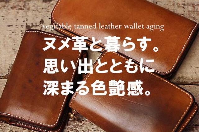 当店で採用しているヌメ革。栃木レザーの数あるヌメ革の中でも、最高峰のグレードのヌメ革のみを使って仕立てたt革財布。極上のヌメ革製品と暮らす。思い出とともに深まる色艶感〜お客さんの革財布、革小物を極上の経年変化・エイジング例をご紹介いたします。