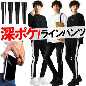送料無料 メンズ スキニー ストレッチパンツ スキニーパンツ スリム パンツ カラーパンツ ラインパンツ 黒 白 ブラック ホワイト ストレ