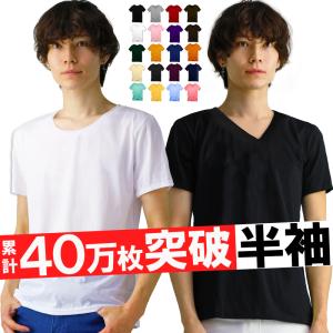 tシャツ メンズ 半袖 ロンt 無地 vネック 黒 uネック 深vネック インナー カットソー トップス おしゃれ 男性用 ウエア