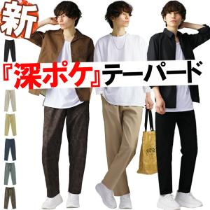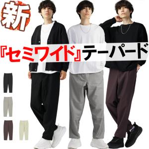 テーパードパンツ メンズ セミワイド イージーパンツ メンズ パンツ テーパード カラーパンツ 黒 白 ブラック ホワイト ストレッチ ズボ