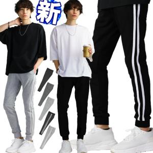 ジョガーパンツ メンズ スウェットパンツ クロップド おしゃれ ライン 下 スリム 細身 ラインパンツ ジョガー アンクル パンツ 韓国 スウ