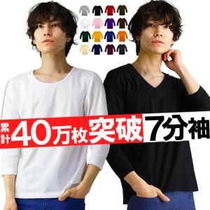 tシャツ 七分袖 メンズ vネック uネック 深vネック 無地 カットソー インナー 黒 ブラック ネイビー タイト キレイめ お兄系 キレカジ ア