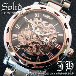 送料無料 腕時計 オートマティック 自動巻き メタル スケルトン ピンクゴールド 【 t117 】
