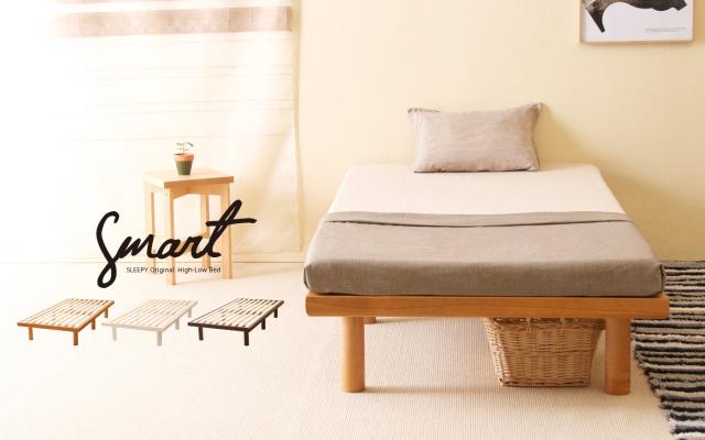 木製「ハイローベッド smart(スマート)セミダブルサイズ(SD)」 組立簡単 すのこベッド ベッドフレーム 天然木 ヘッドレス 石崎家