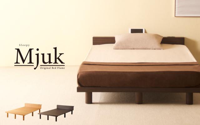 木製 ベッドフレーム 「mjuk(ミューク)シングルサイズ(S)」 天然木 すのこベッド 高さ調整 フレーム ローベッド 宮付き 石崎家具