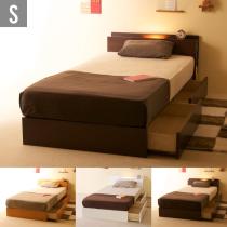 木製 収納付きベッド 「Symphony(シンフォニー)シングルサイズ(S)」 収納ベッド 引き出し付き 宮付き コンセント付き ライト 照明