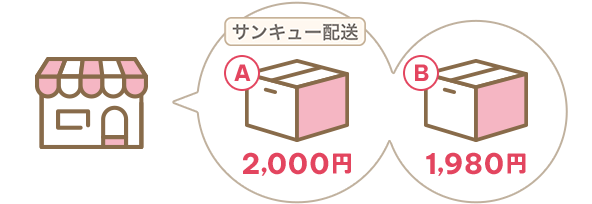 店舗Aで「サンキュー配送」の対象商品A(2,000円・税込)と店舗Bで「サンキュー配送」の対象商品B(1,980円・税込)をそれぞれの店舗でお買い上げの場合